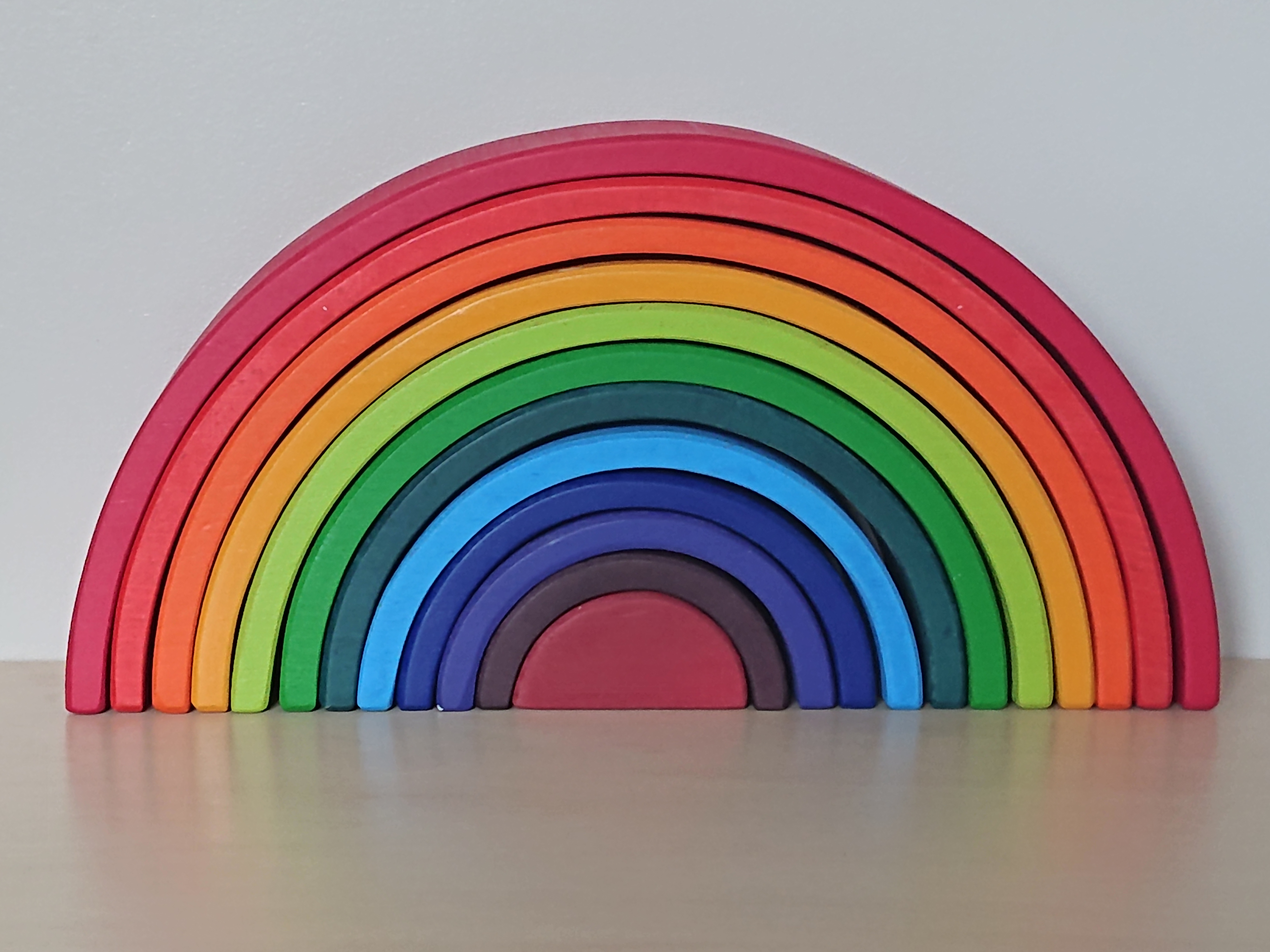 Regenbogenbauspiel aus Massivholz - ein vielseitiges Spielzeug, das viele Möglichkeiten für Geschicklichkeits- und Gleichgewichtsspiele usw. bietet.