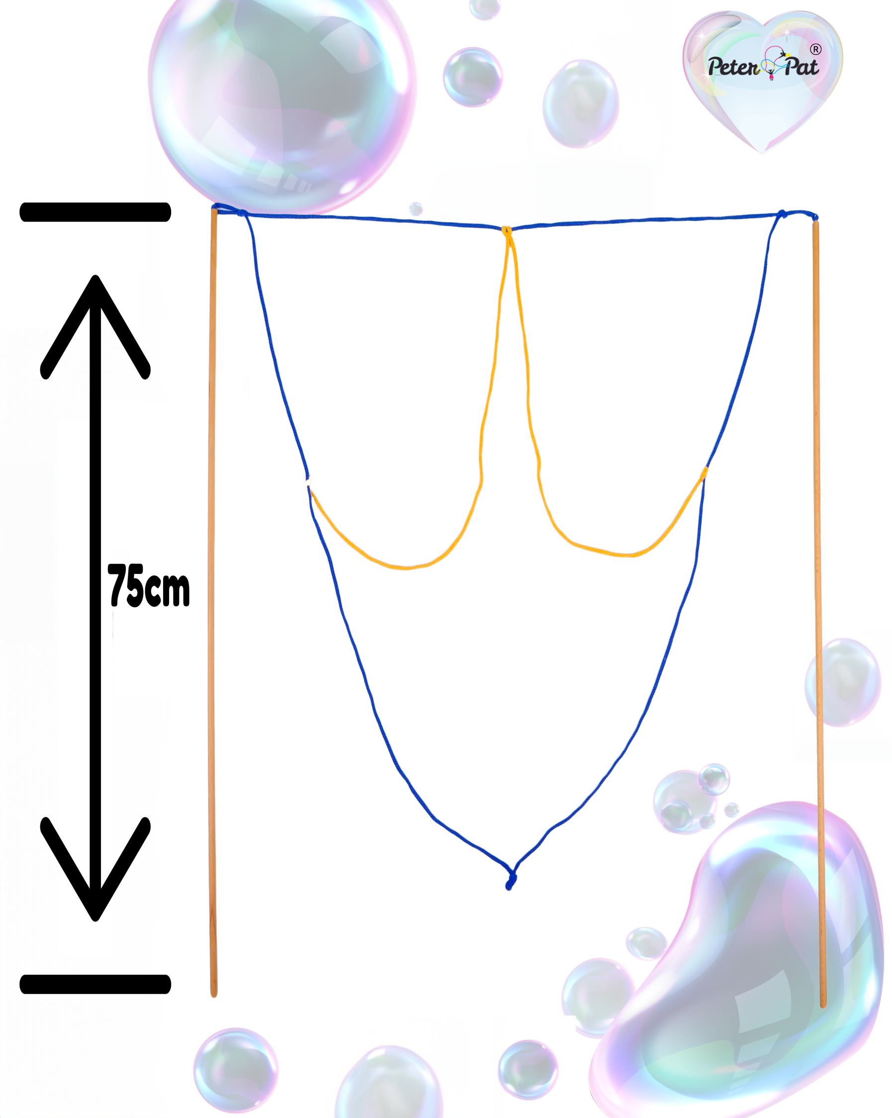 Der Seifenblasenstab hat eine Stablänge von 75 cm und ist bereits für ältere Kindergartenkinder geeignet. Für jüngeren Kindern empfehle ich die Seifenblasenstäbe Stern, Herz und Blume oder den einfachen Stab Triangel.