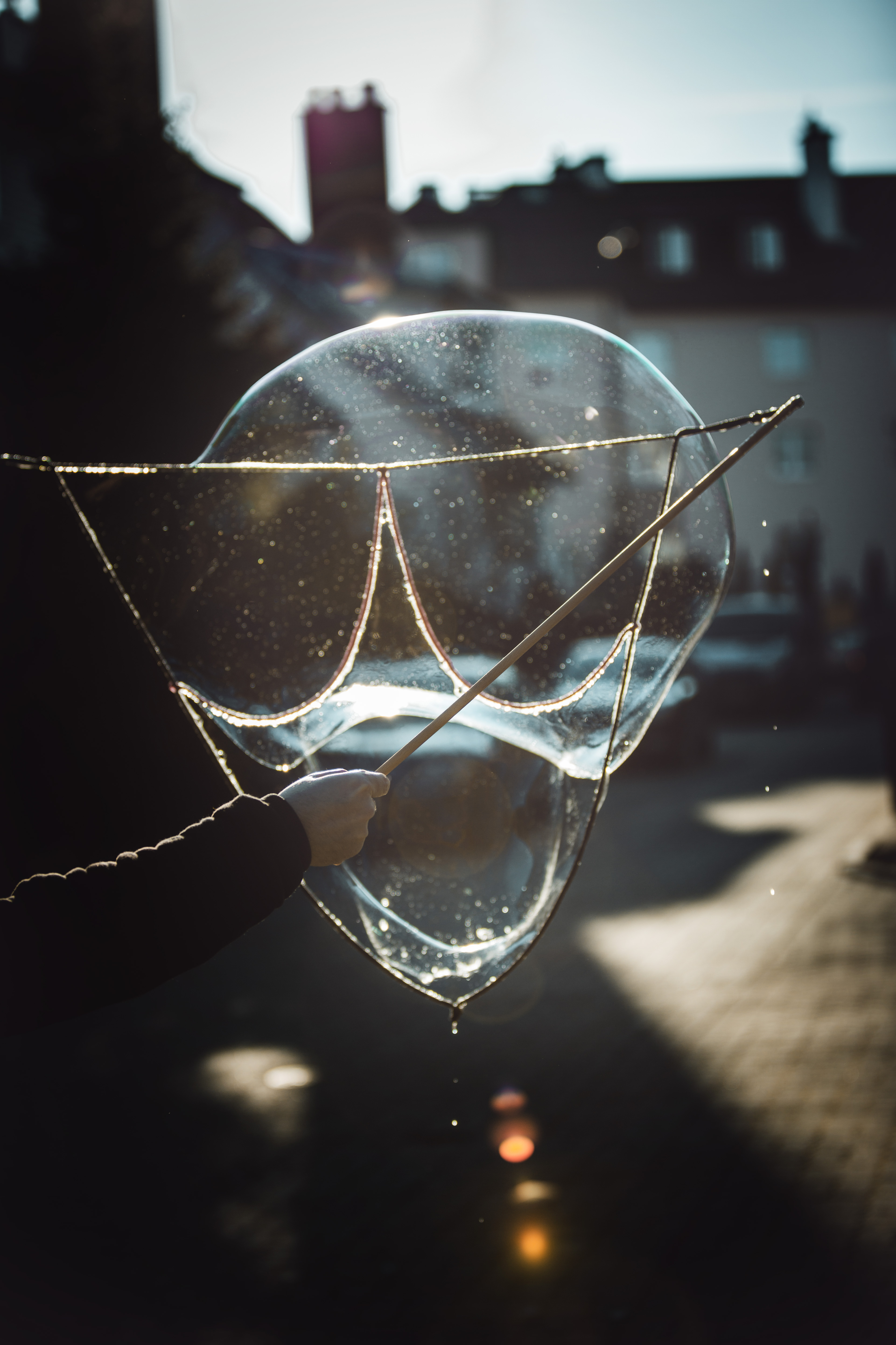 TIPP: Besonders gut halten die Seifenblasen, wenn die Mischung einige Stunden ruhen kann bevor sie verwendet wird. Versucht, beim Eintunken eurer Seifenblasenstäbe wenig Schaum zu machen!