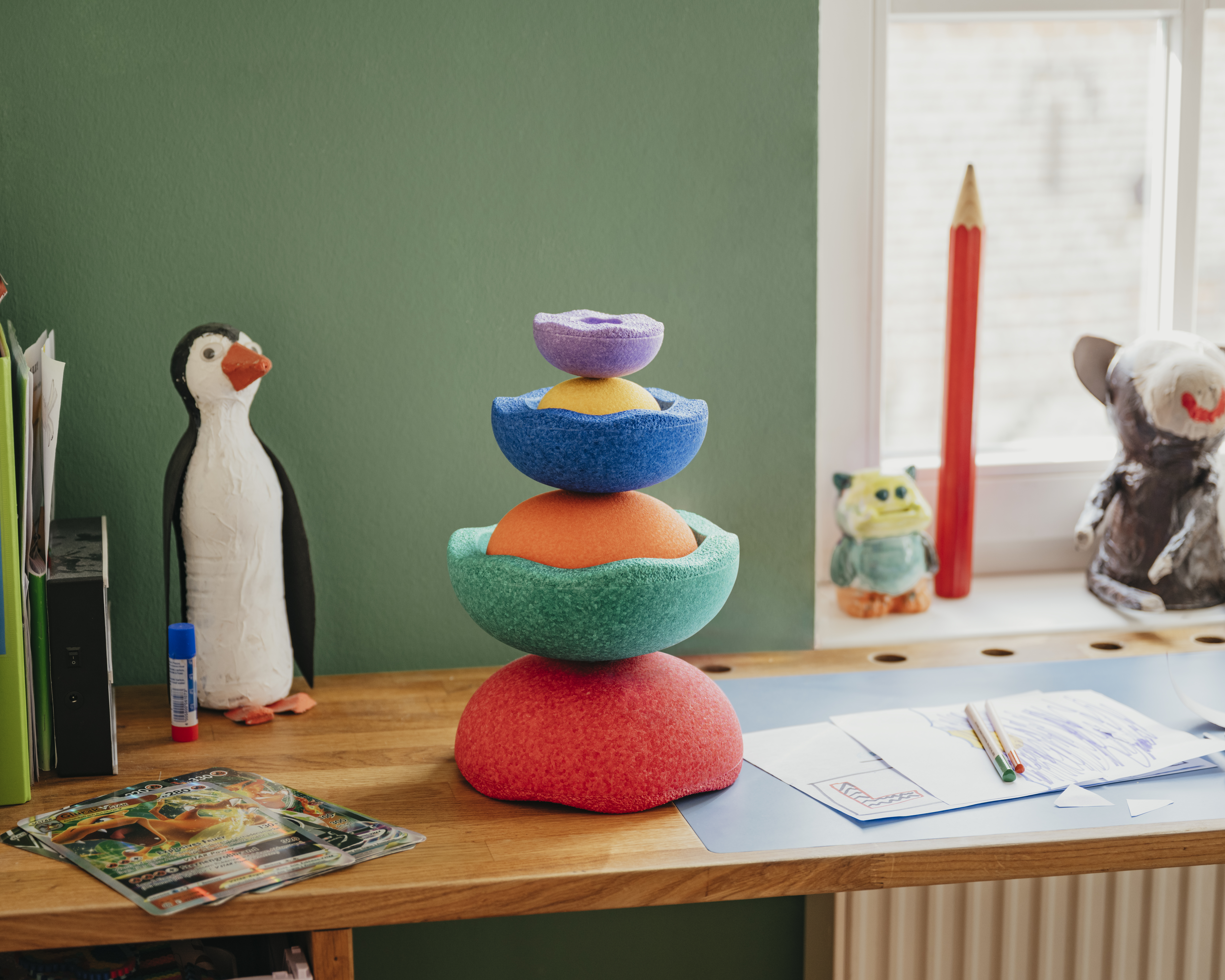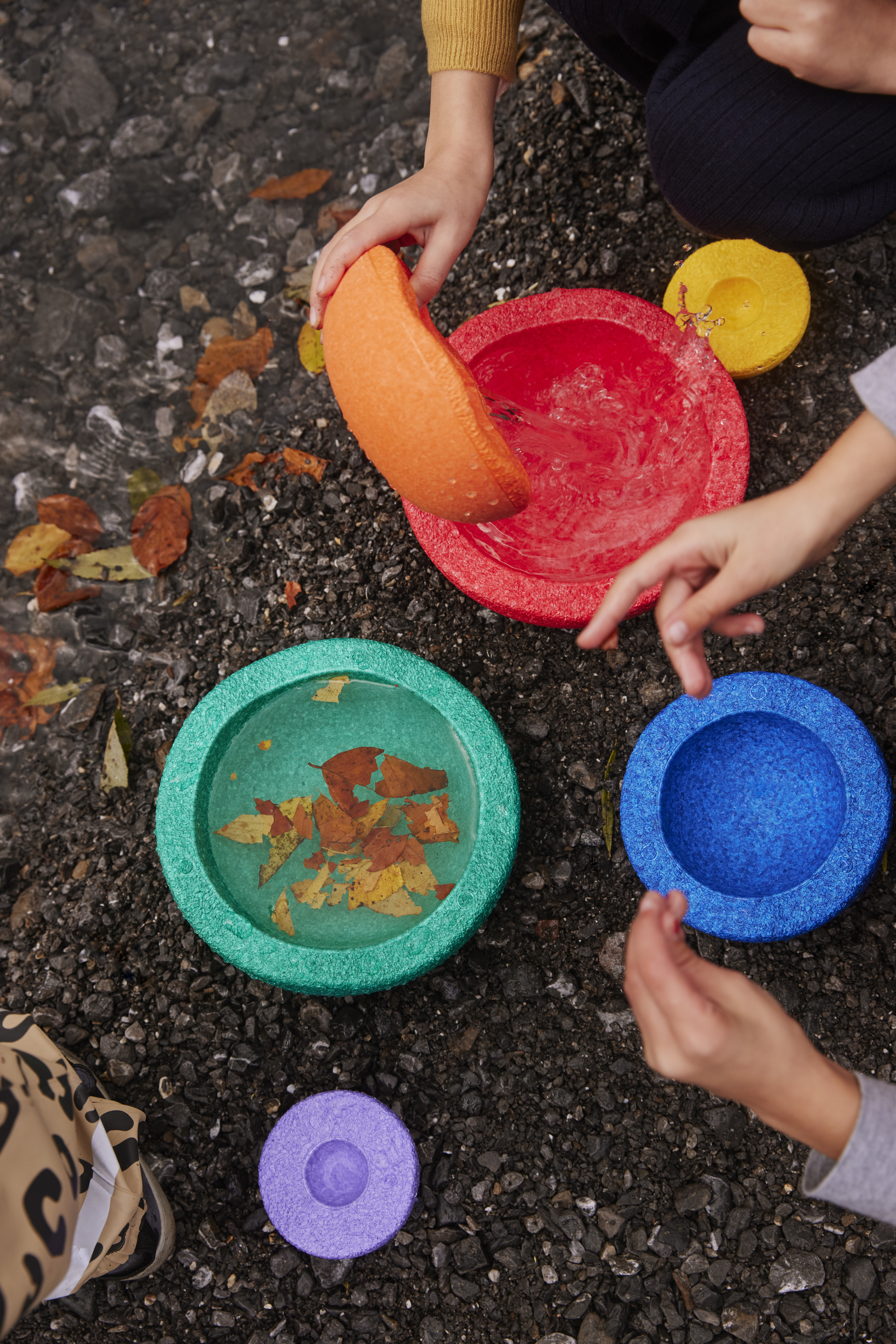 Schicht für Schicht entfaltet sich eine andere Farbwelt und regt zu vielseitigen kreativen Spiel- und Bewegungsabenteuern an. Das Bauen von außergewöhnlichen Regenbogenskulpturen und Spiellandschaften oder das entdecken des beliebten Steckprinzipes angelehnt an der Matroschka macht klein und groß riesen Spaß.