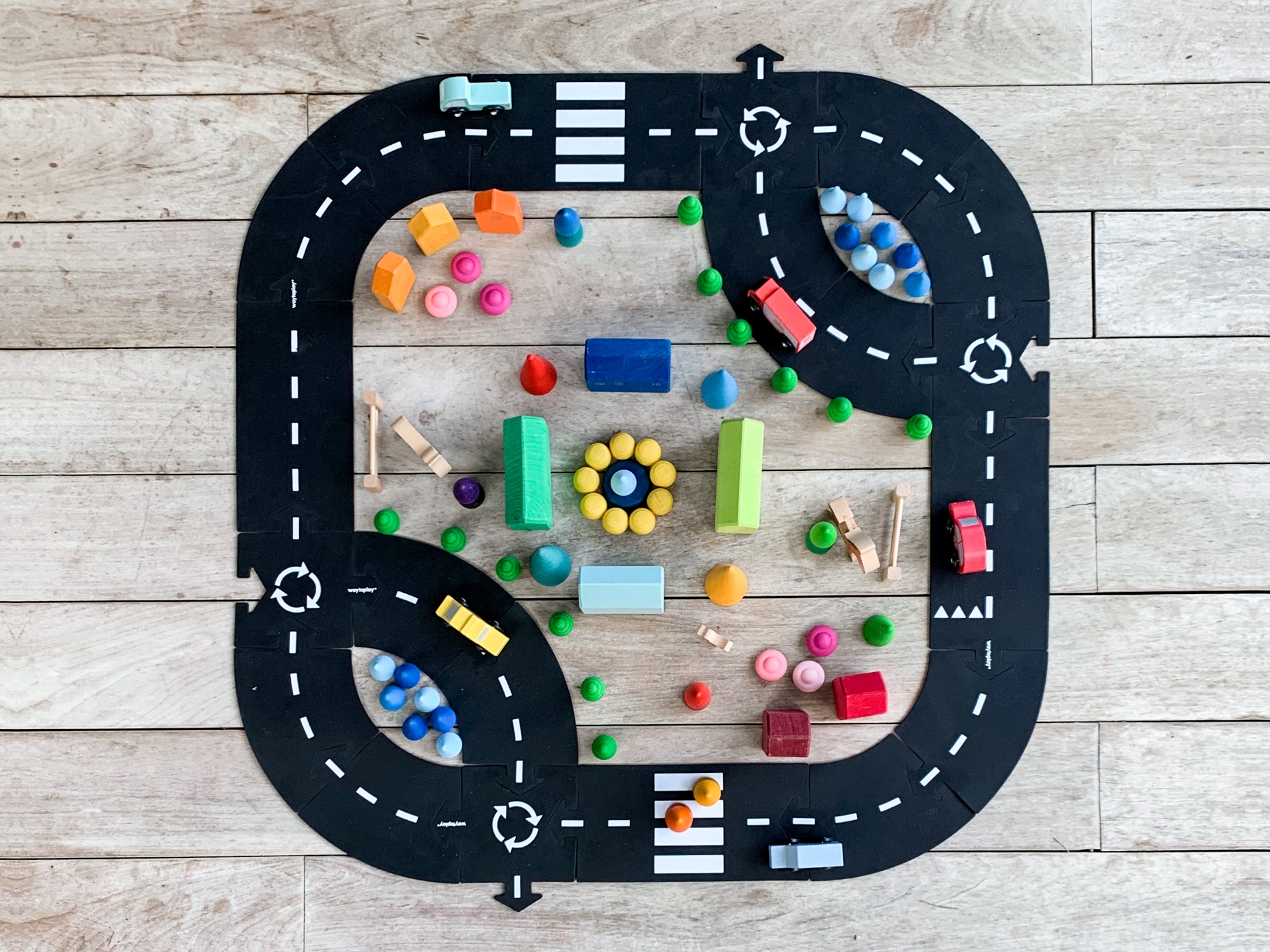 Highway von Waytoplay ist ein größeres Einstiegsset, das 24 Teile enthält und Kindern mehr Möglichkeiten lässt, ihre Ideen umzusetzen.