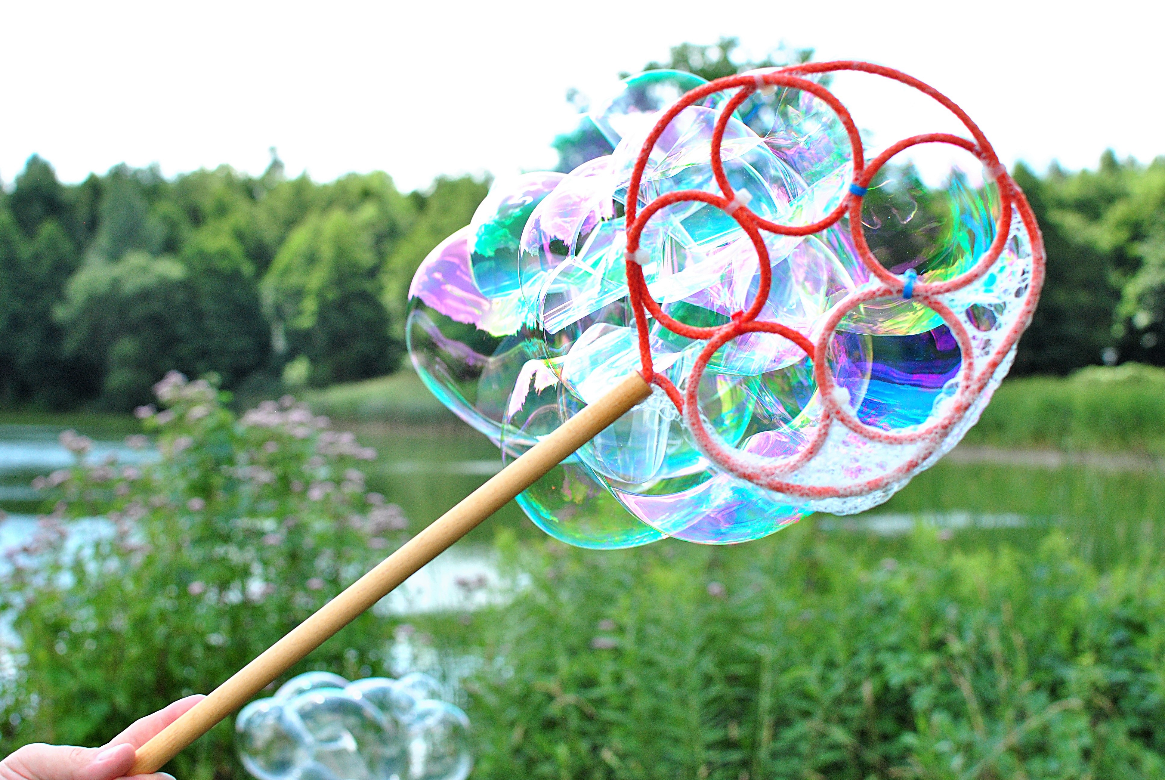 Besonders gut halten die Seifenblasen, wenn die Mischung einige Stunden ruhen kann bevor sie verwendet wird. Versucht, beim Eintunken eurer Seifenblasenstäbe wenig Schaum zu machen!