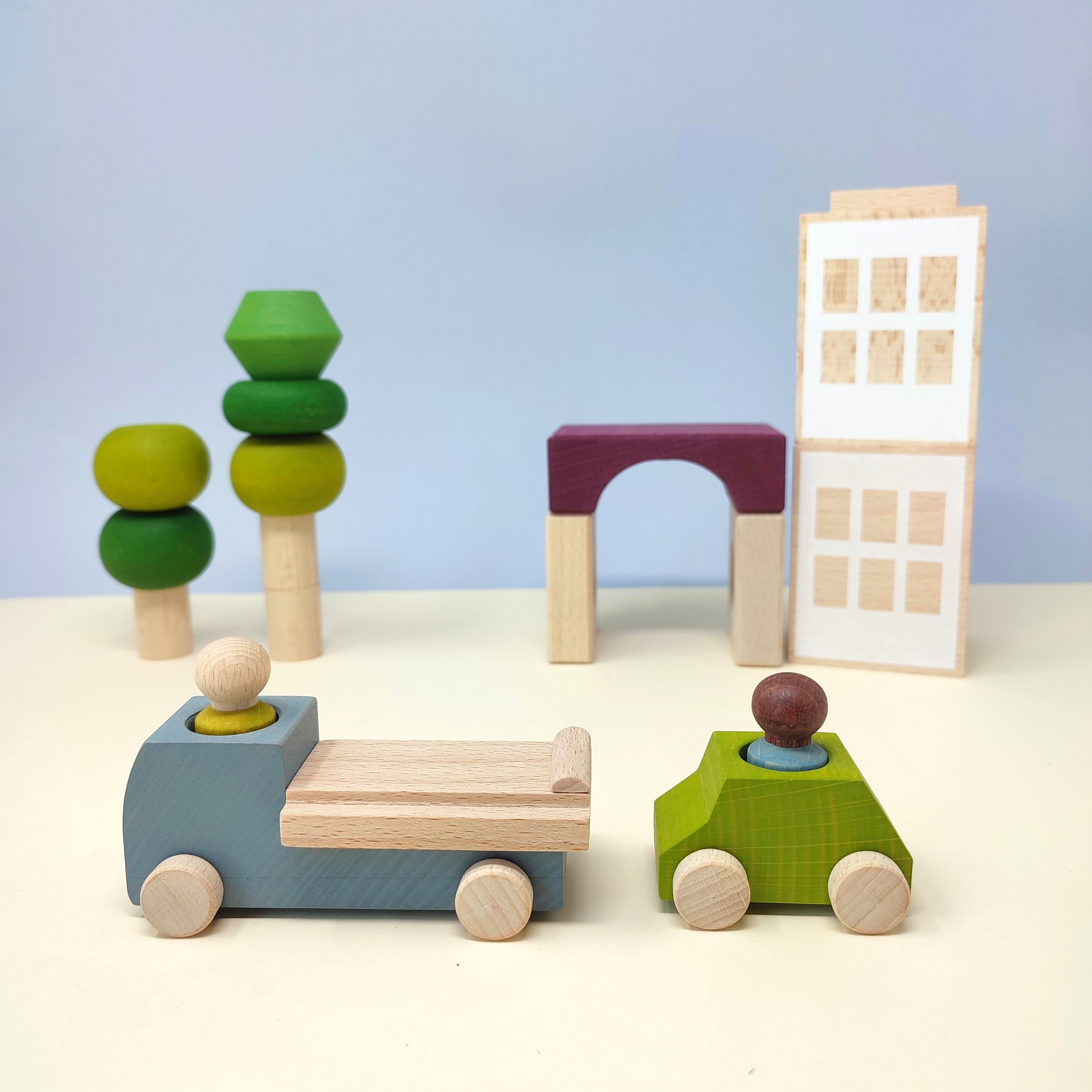 Der Abschleppwagen aus Buchenholz gefertigt hilft bei jeder Panne den Holzautos von Lubulona. Zu jedem Abschleppwagen gehört ein Fahrer und ein kleines Lubu-Auto, zu dem auch ein Fahrer gehört.