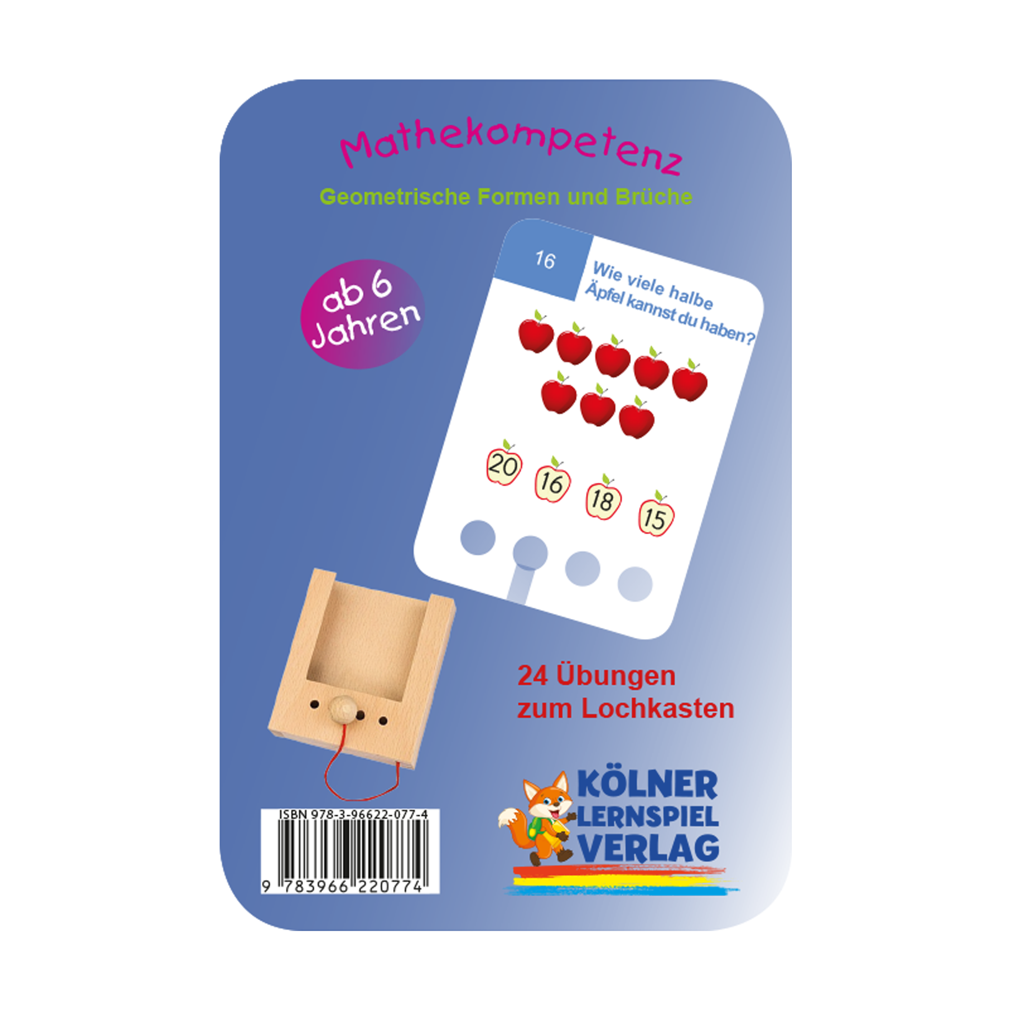 Das Kartenset "Mathekompetenz" für den Lochkasten bietet eine vielseitige Lernerfahrung für Schülerinnen und Schüler der 1. Klasse. 48 Übungen trainieren verschiedene mathematische Fähigkeiten, das Zählen von Objekten, das Fortsetzten geometrischer Formen und das Üben von Brüchen. Durch die gezielten Aufgaben werden die Kinder spielerisch an mathematische Konzepte herangeführt und können somit ihre Mathekompetenz gezielt verbessern. Die Schwierigkeit der Aufgaben steigt mit der Kartenzahl, was es zu einer spannenden Herausforderung macht.